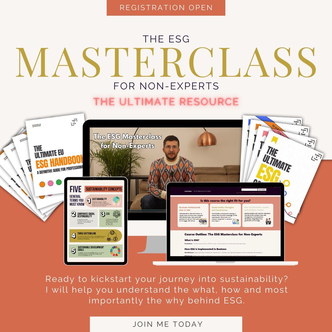 1️⃣ The ESG Masterclass for Non-Experts (€79 value): Your roadmap to understanding ESG and finding your role in this growing field.