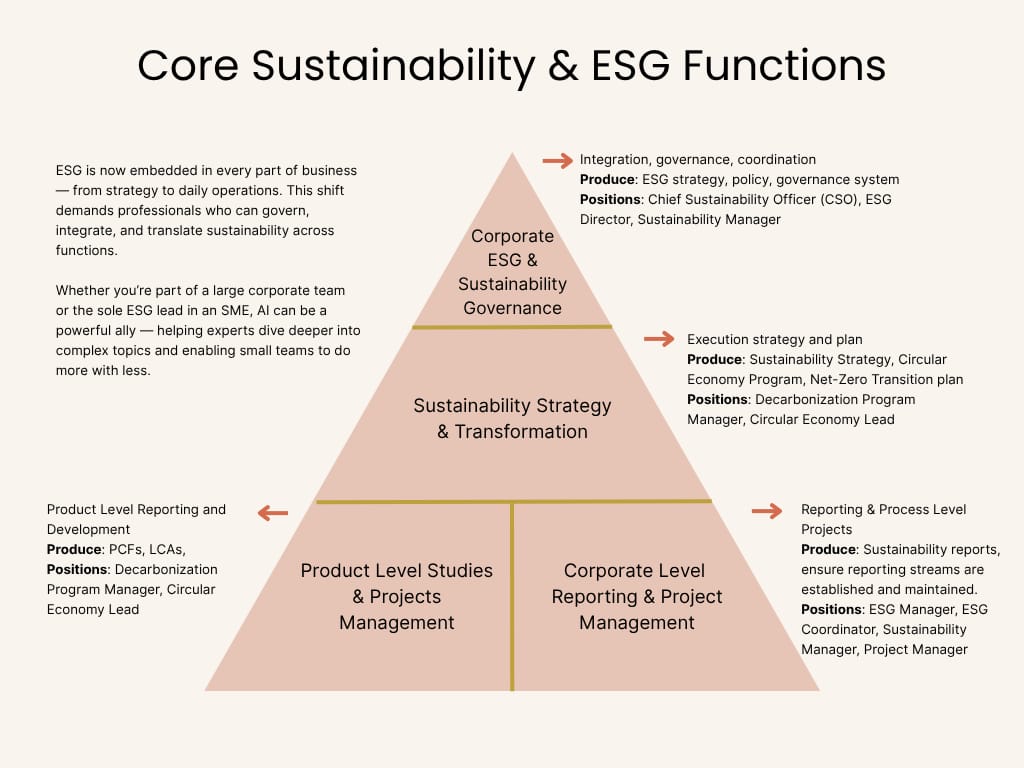 You’ve probably seen hundreds of sustainability roles with titles like “Sustainability Manager” or “ESG Analyst”. But are they all the same? And what do they actually mean? In a field exploding with both opportunity and ambiguity, finding your path starts with understanding the system.
